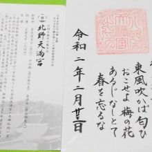 梅苑公開期間限定の御朱印は、道真公の御歌が記されています。