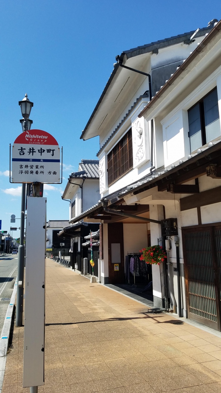 筑後吉井は、江戸時代に豊後街道の宿場町として栄えました。現在では伝統的景観の保存地区として、昔ながらの土蔵や白壁の旧家、水路がきれいに整備され、風情のある町並みとなっています。国道沿いのメインストリートには、真っ白な壁の建物が日差しを受けて眩しいほどでした。