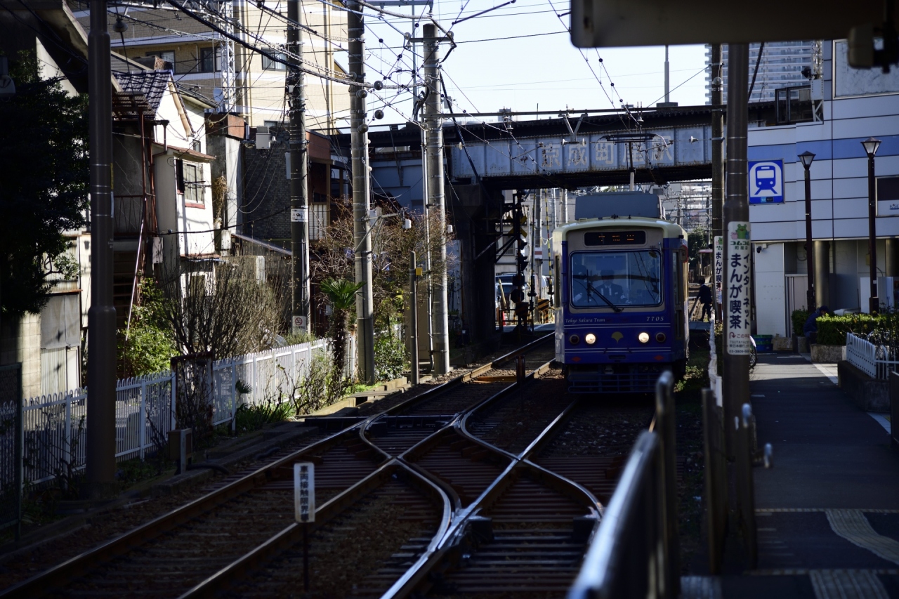 東京の下町風情の色濃く残る街並みを専用軌道がほとんどの区間をぶらりと。