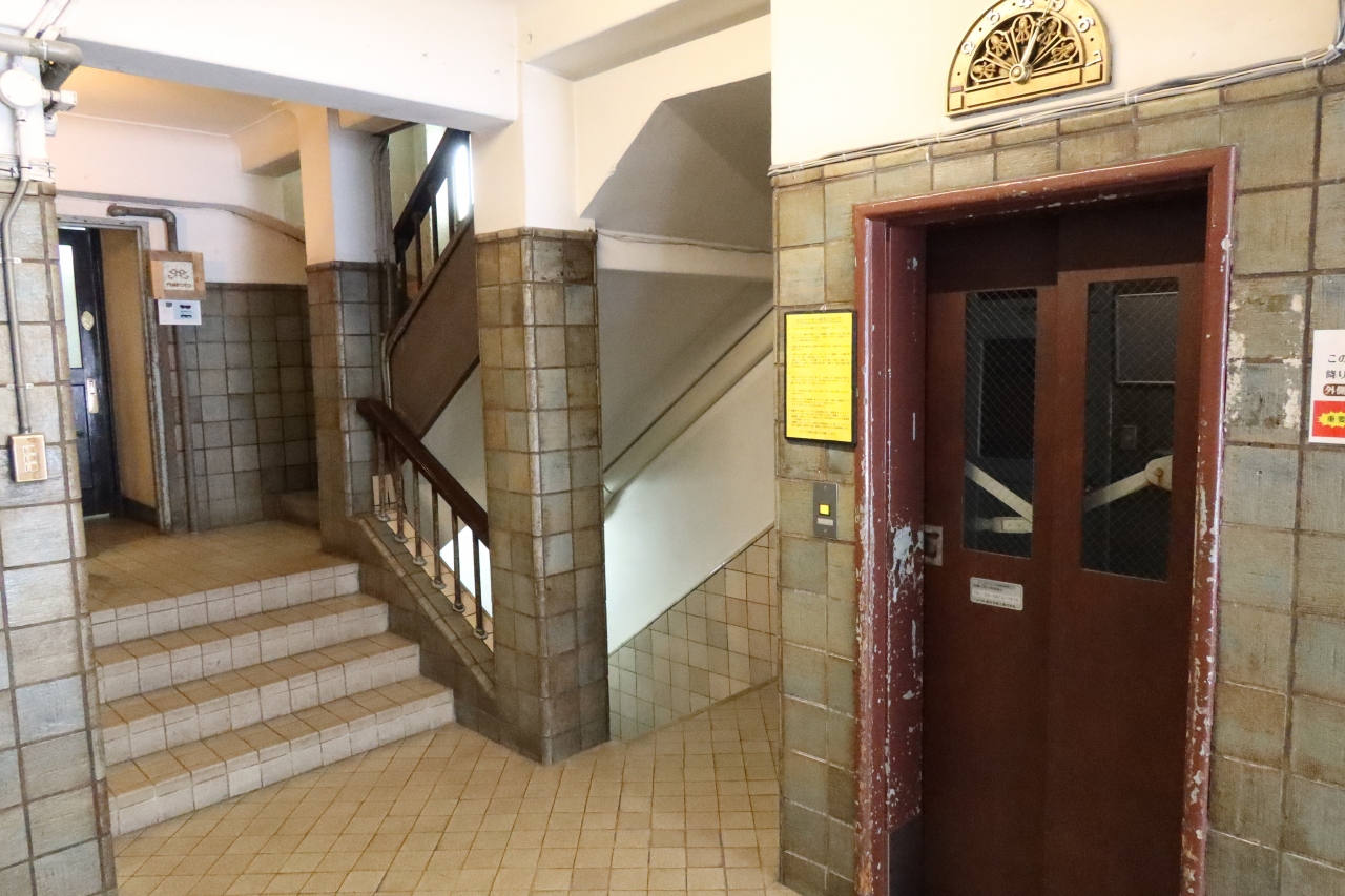 銀座一丁目の銀座三原通り沿いにあるレトロなビルが奥のビルです。戦前の1932年に本館、1934年に新館が建てられた左右対象のビルで、銀座にあるレトロ建築の中でも群を抜く貴重なビルです。外観もレトロ感たっぷりですが、内部も昔のままで、手動式のエレベータ、すり減った階段や手すり、タイル貼りの床など、すべてがレトロ。このビルの中にはギャラリーなどの面白いお店も多くそれも魅力です。