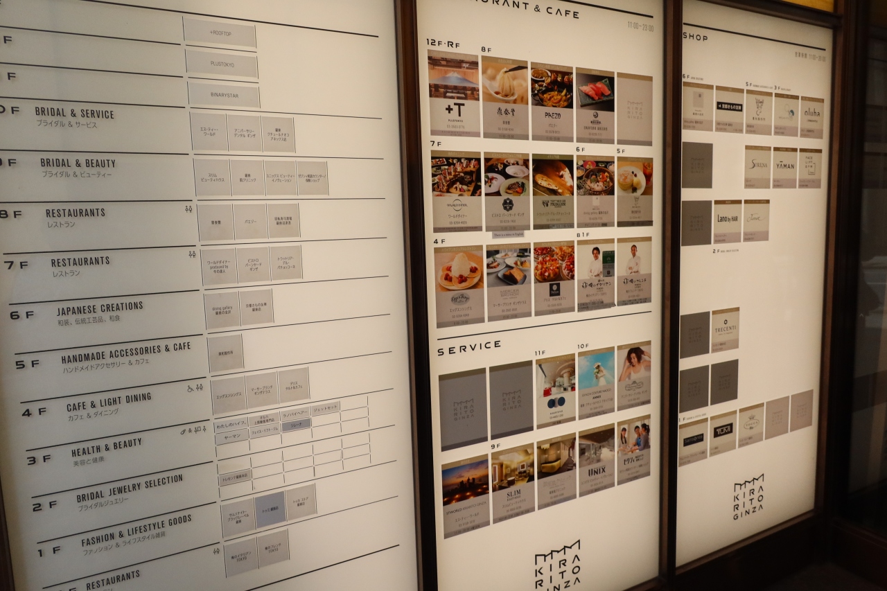 銀座一丁目の銀座中央通りに面した複合商業施設です。2014年のオープンしたキラリトギンザは名前の通り建物はキラリと輝く大きな建物です。そして、グルメの人にお薦めの施設です。エッグスンシングス、俺のイタリアン、フレンチ、鼎泰豐、MERCER BRUNCH GINZA TERRACE等々名の知れたレストラン、カフェが入っており、行列が多数。エッグスンシングスに行きましたが、入るのに15分は掛かりました。