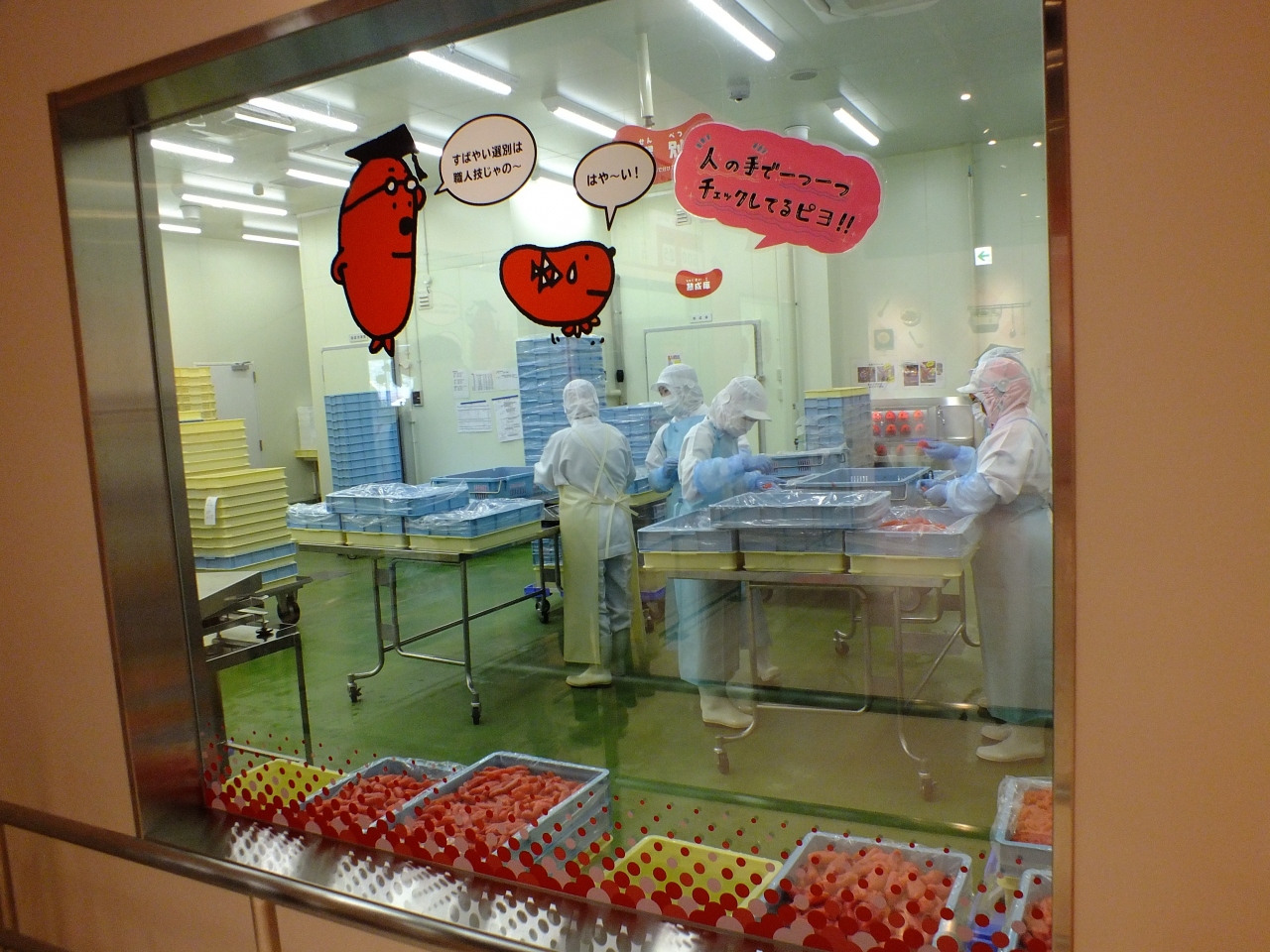 めんたいパークの中には小さな工場見学ルートが有り明太子を作る工程も