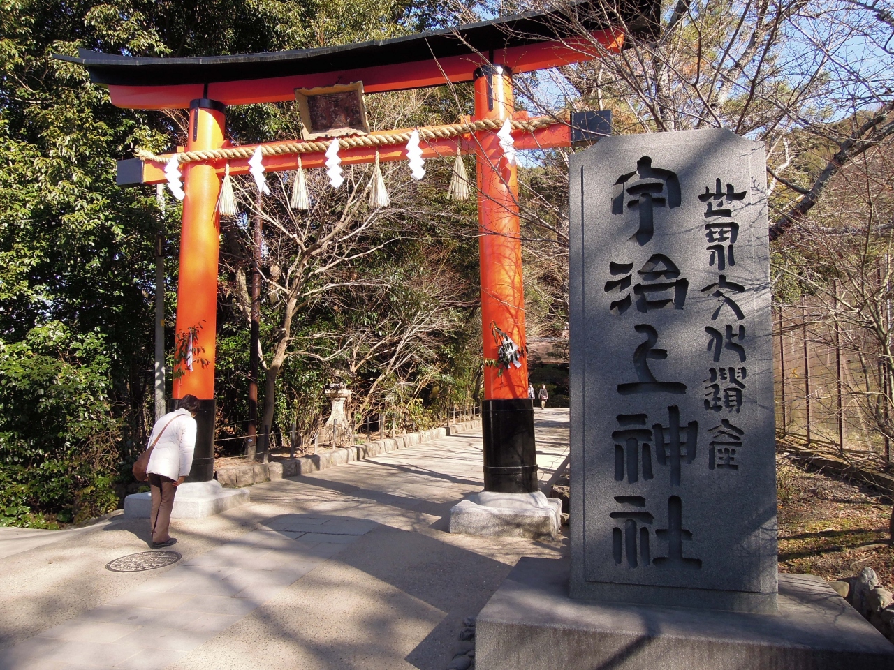 御朱印ツアーで訪問した。何色かあり迷ったが、紫式部にちなんだ「紫」の和紙を使った御朱印を選択した。鳥居扁額「離宮(同神社の旧称)」と書いてあるものだ。この神社は「古都京都の文化財」の一つとして世界遺産に登録されている。社殿は近年の研究の結果、現存では最古とされる。平等院の宇治川を挟んだ対岸にあり、平等院だけで帰ってしまう観光客も多いが、宇治に来たならば訪れておきたい場所だ。