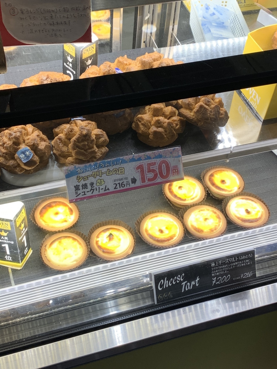 人気はチーズタルトですが、今回はシュークリームが安くなっていたのでシュークリームにしました。