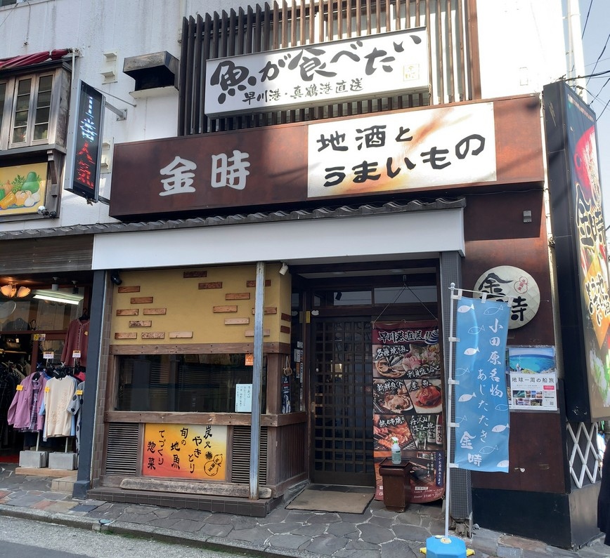 店の開店時間に合わせて訪問したのは小田原駅近くの路地裏に店を構える地元客に人気の居酒屋 金時(きんとき)へ