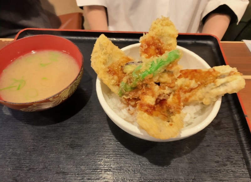 カリッと揚がった天ぷらの衣にホワホワな味の身、そして濃い目の丼つゆの相性が抜群!