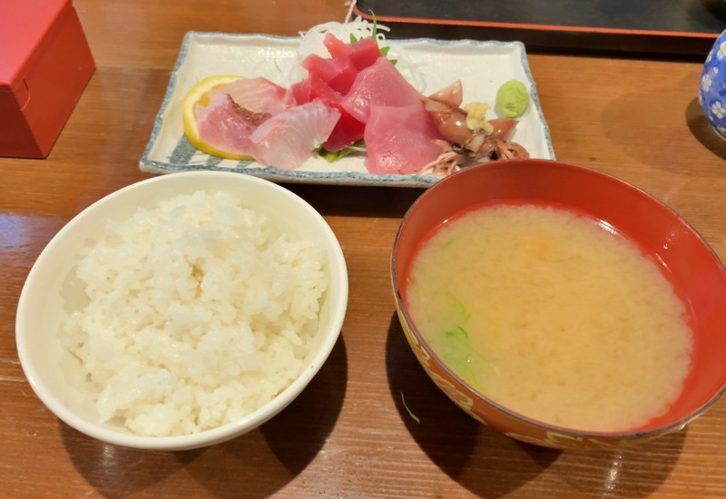 刺身はイシダイ・地鯛・地ブリ・ホタルイカ、そしてメニュー表記されてませんでしたが、マグロも入って刺身定食としてはなかなか豪華なラインナップ!