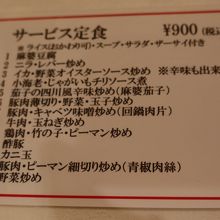 頂いたのはサービス定食と担々麺、餃子。サービス定食は900円にも関わらずボリュームもあり、ご飯のお替りもでき、しかも夜も頂け相当お得。麻婆豆腐は味もななかです。担々麺は思った程辛くなくちょっと残念でしたが、一般的には美味しいとおもいます。