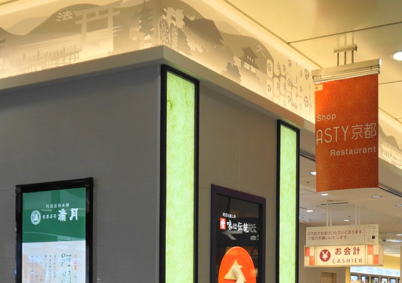 京都駅八条口にある「アスティ京都」、老舗の京名菓をはじめ京みやげが一堂に集まっています。