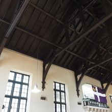 ここの食堂の特徴はなんといっても歴史のある古い建物です。上を見上げればトラス組の天井が広々と高く、開放感のあるつくり。席は詰まっているので狭いですが、天井が高いのでそれほど圧迫感を受けません。