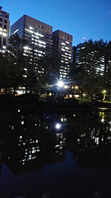 日比谷公園内の西側、厚生労働省等の官庁側に位置していますが、周囲は木々に囲まれていて、夜間は特にひっそりとしており、周囲を散策したり、ベンチに座ったりしながら物思いにふけっていると、時の経つのを忘れる感じです。日比谷公園の中でも絶好のスポットですね。