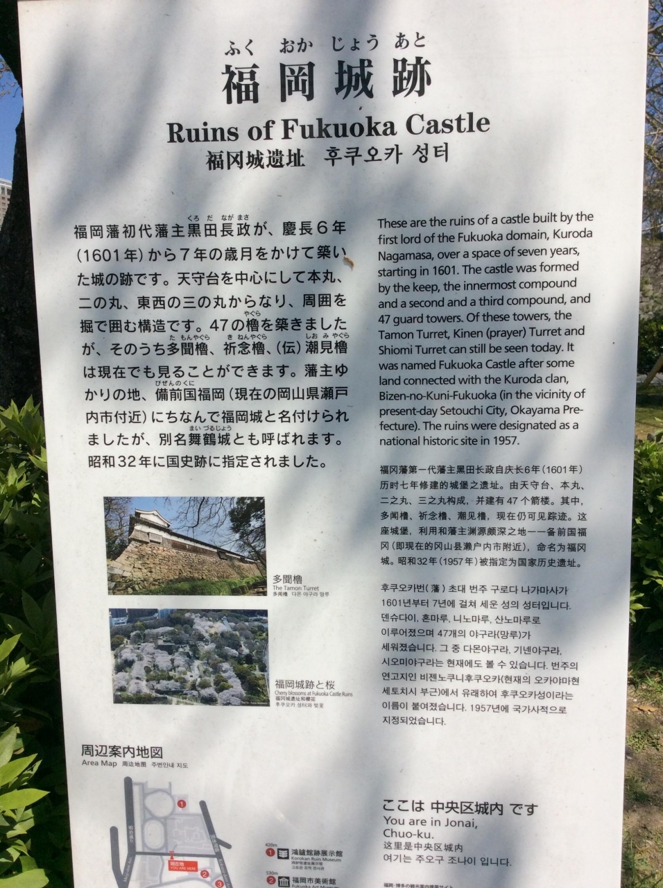 初代福岡藩主の黒田長政による築城期間は1601年から7年に渡ったとされています。