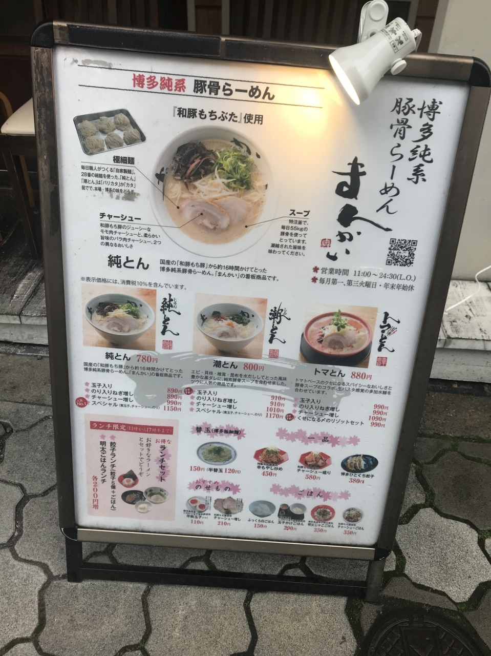 店の外から見ると小さな店かと思いますが、中はお洒落で広い店です。純とん、潮とん、純とんラーメン780円を注文。チャーシューは2種類。キクラゲともやし入り。麺は細麺で茹で加減を選べます。スープはあっさりしたとんこつです。ニンニクが置いてあるので、入れると合うと思います。スープだけで飲むといいですが、麺とはあまり絡まない感じで少し残念。