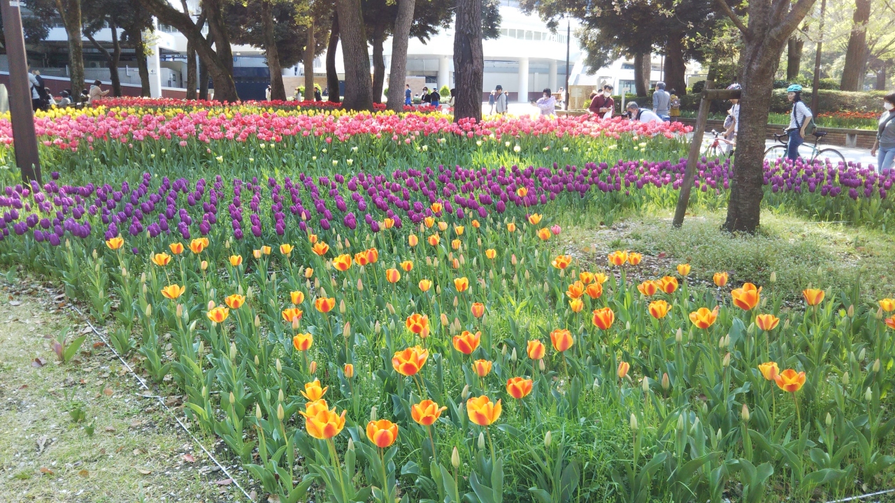 久しぶりに横浜公園に来るときれいなチューリップが咲いていました。あと、2週間くらいが見ごろだと思います。2020年は新型コロナウィルスが流行していますが、そんな嫌なニュースを忘れさせてくれたくなるくらいカラフルな花が咲いており、いい記念撮影ができました。