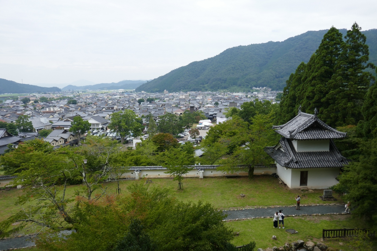 出石城下町の見どころのひとつです。私たちは、街のシンボルともいえる「辰鼓楼」近くの駐車場に車を停め、街中を徒歩で観光しました。出石城跡は、駐車場からも徒歩3分くらいとアクセスが良いです。石段を登ると城下町を一望でき、ここからの眺望はなかなかのものです。9月初旬でしたが、緑が美しく風光明媚な光景を堪能出来ました。