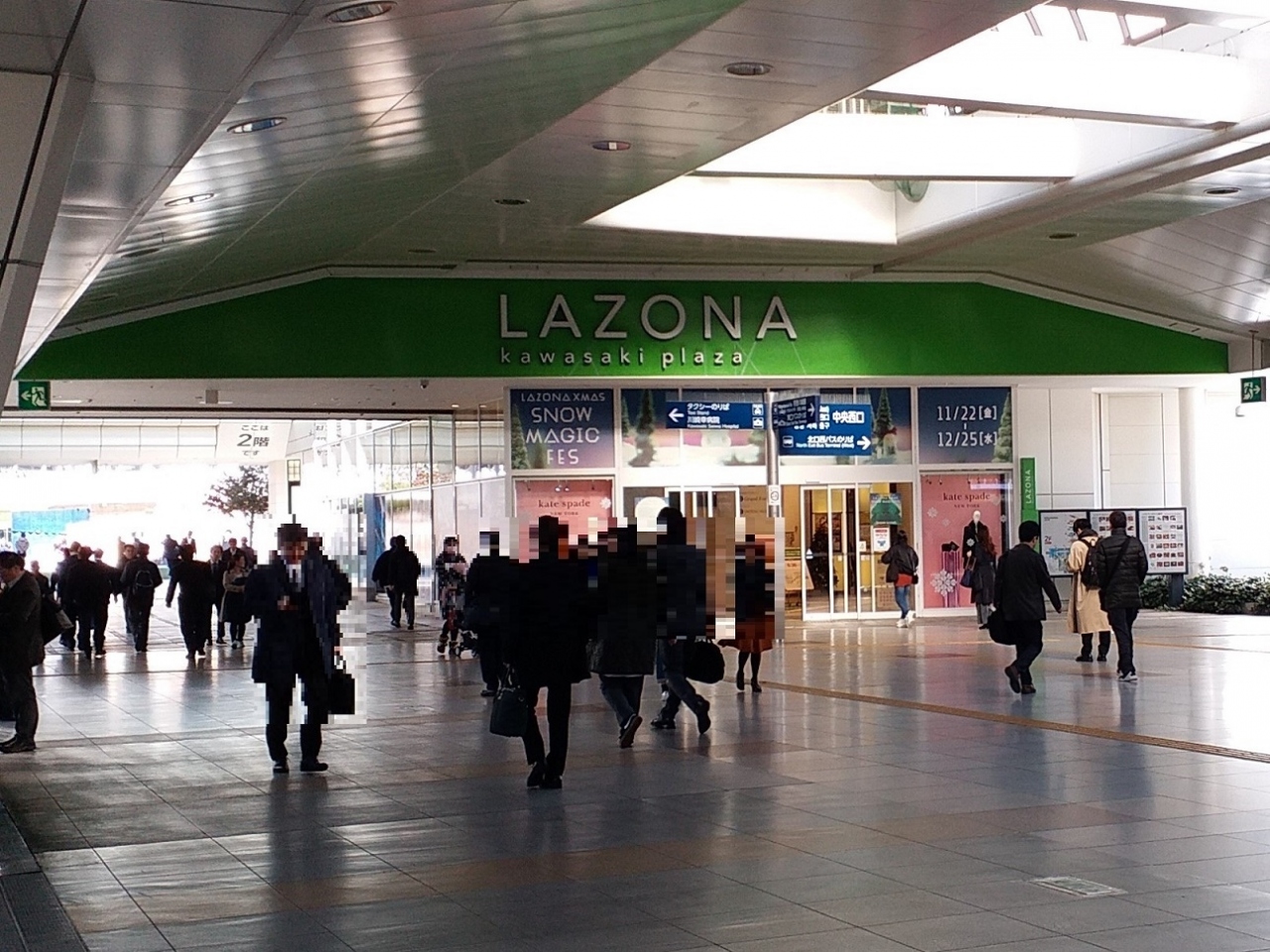 JR川崎駅の西側にあり、改札を出たフロアーからは歩行者用のデッキで直ぐにアクセスできました。まだまだ新しい大型ショッピングモールです。GU(ジーユー)やアメリカンイーグルといったファッション専門店をはじめ、食品や家電などのお店も入った大きな施設でした。低層のモールなので、垂直方向の移動が少なく歩きやすいように配慮された施設でした。