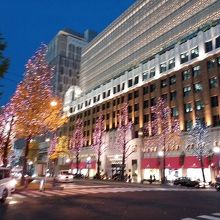 大丸本館の歴史的建築のライトアップとの相乗効果もあり、実に華やいだ雰囲気を醸し出していました。
