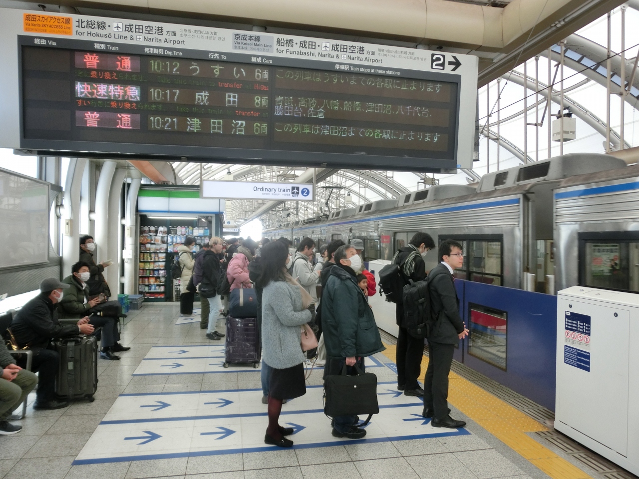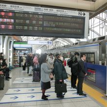 乗車のホームは成田空港行きの特急を別にするとたった一本しかないので、初めてだと少々分かりにくい。