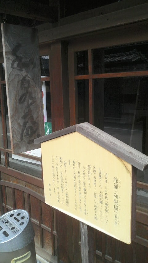 江戸時代の風情を残す古民家で、家の前の立て札によると「旅籠・和泉屋」とあり、昔から旅の宿として使われていたとのこと。