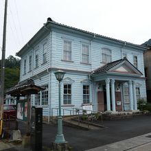 出石城下町のシンボル的存在の「辰鼓楼」から東へ200メートルほどの場所にある洋館です。スカイブルーの洋館で周りの建物と大きく異なる外観なので、ひときわ目立ちます。案内書きによると明治年間に建てられ、かつて出石郡役所として使用されていたということです。出石城下町の中でもとても印象に残る建物でした。