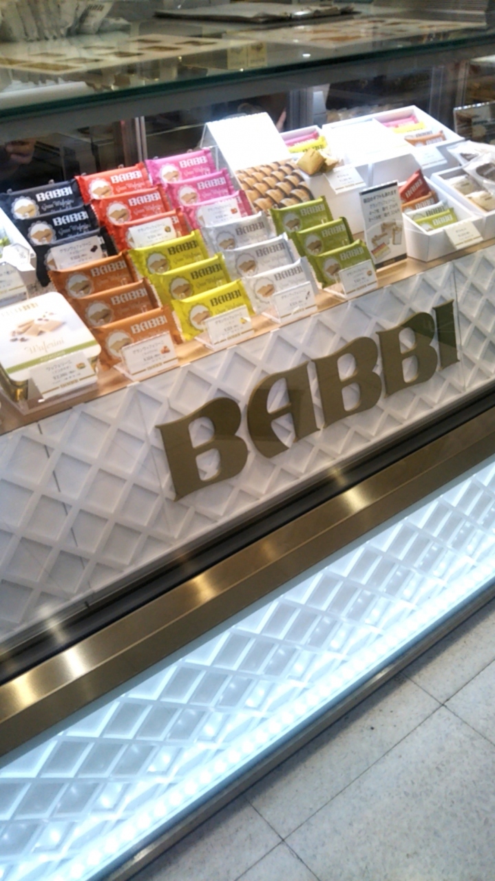 「松屋 銀座店」の地下で明るくちょっと目立つスイーツショップがあります。『バビ (松屋銀座店) 』で、イタリアの老舗でウエハースを販売しています。ジェラートなどに使用されるウエハースですが、美味しく、手土産などにも人気です。