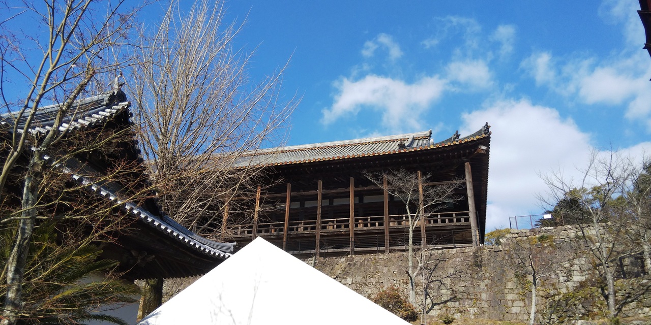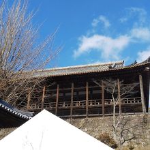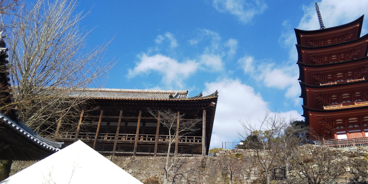 五重の塔と同じ高台にあるので、よく目立ちます。重要文化財の千畳閣です。豊臣秀吉が命じたて始めたものの、途中で秀吉が亡くなったので、天井や壁、窓などなくて未完成だそうです。木造建築では宮島で一番大きいそうです。ガイドさんから聞いたことばかりです。