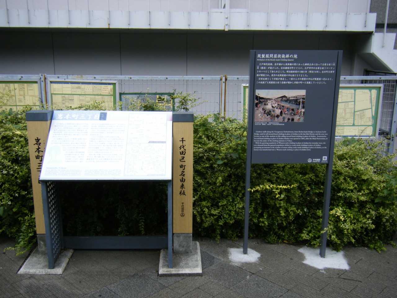 2019年8月に神田~東京駅周辺を散策した際に立ち寄りました。都営地下鉄新宿線岩本町駅を降りてすぐ、昭和通りにある神田川そばの歩道橋わきに「既製服問屋街発祥の地」はありました。江戸時代後期に昌平橋から浅草橋の間の土手周辺には古着を扱うマーケットがあり、繁盛していたとのことです。江戸時代に古着を扱う商売というのは既にあったんですね。全く知らなかったです。面白い歴史を知ることができて良かったです。
