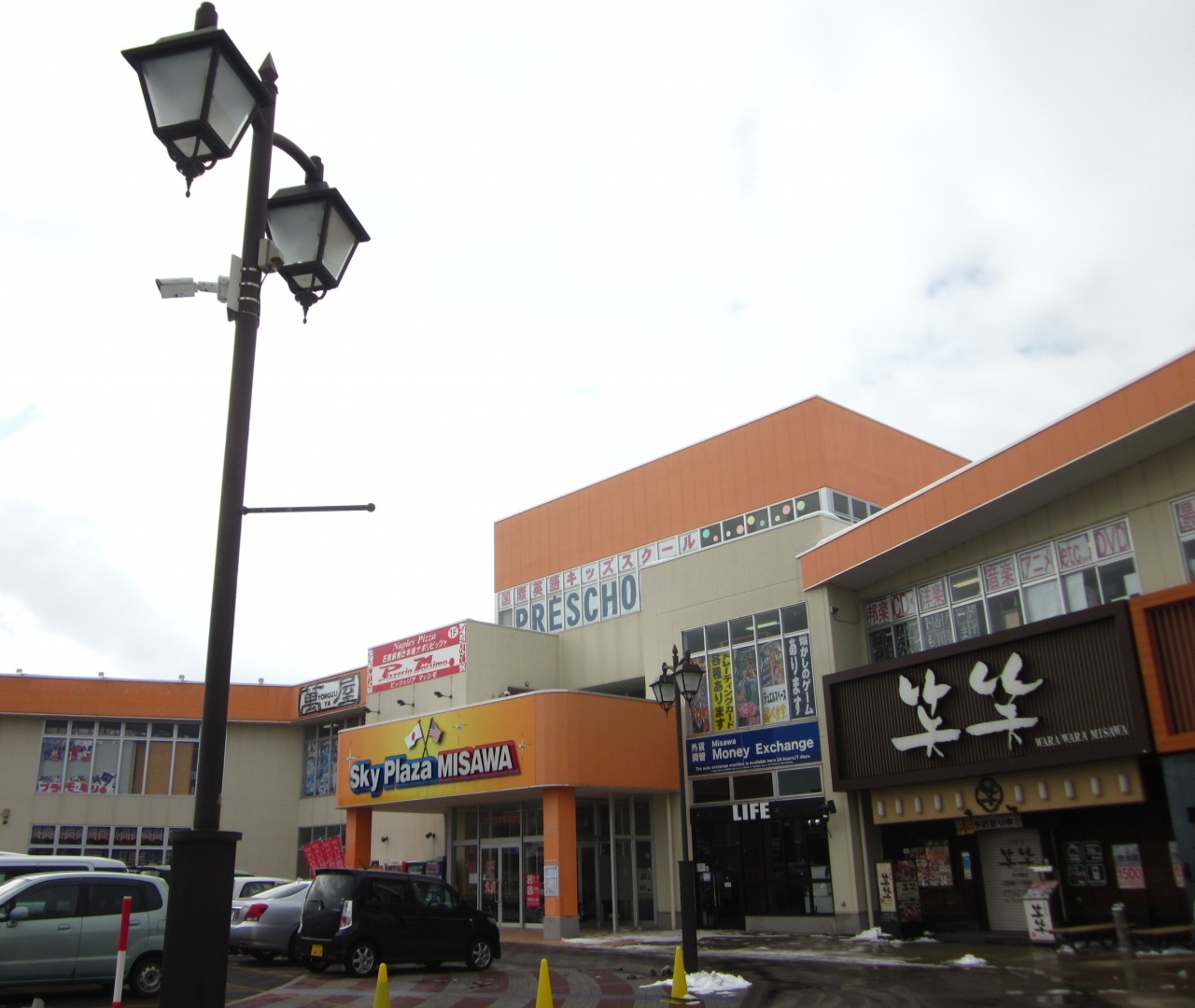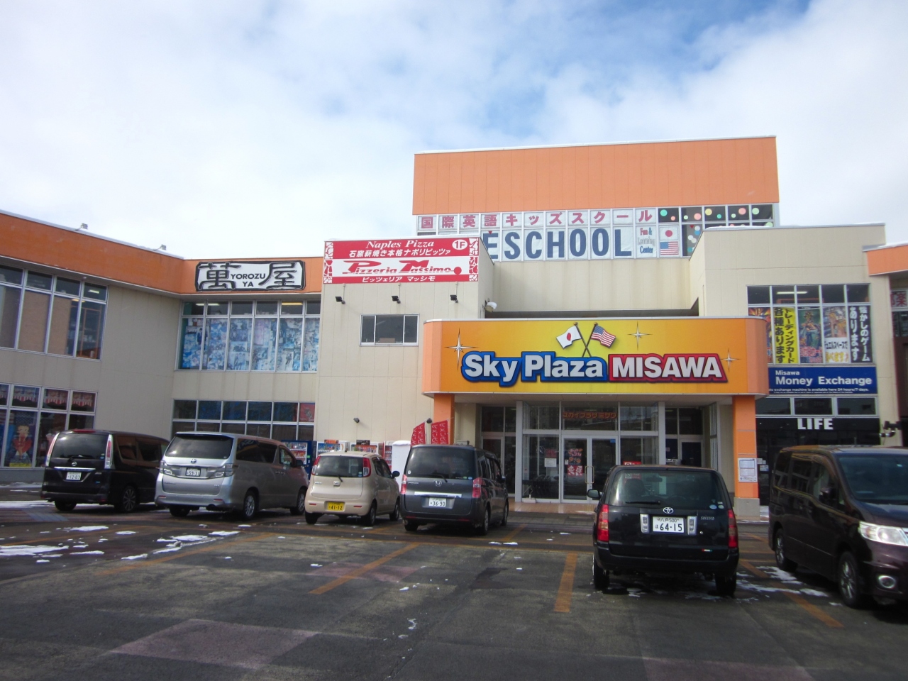 三沢市内の中心地、アメリカ広場バス停前なので判り易くて、車で来ても無料駐車場が有るるので便利。周辺には中央商店街や飲食店に市役所などの官庁も揃っているので利便性が高い「SKY Plaza MISAWA」です。