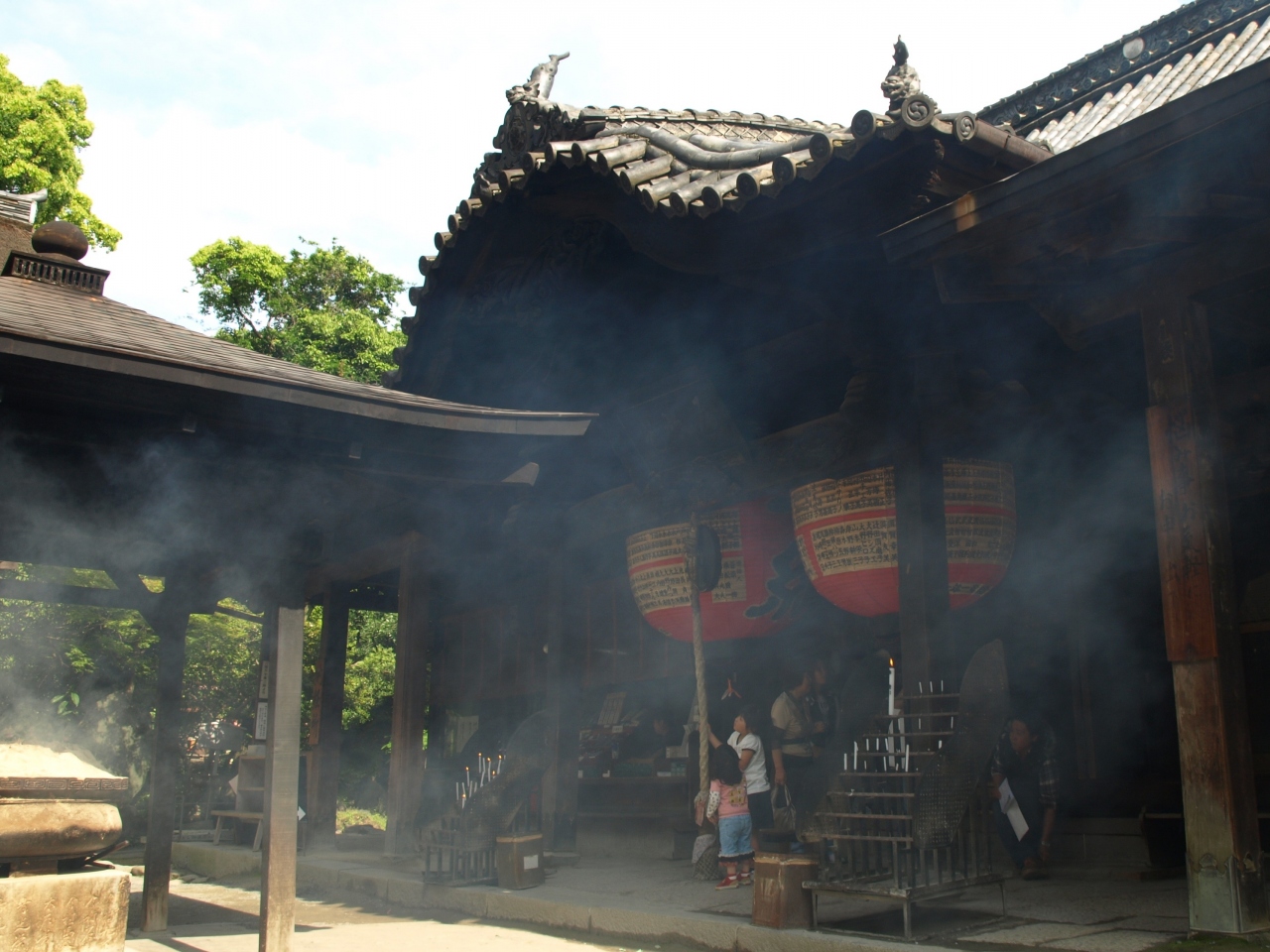 巡礼者よりも地元のお大師さん信者や観光客が多い霊場だそうです。その理由としては、境内ほとんどの堂塔が国宝、国の重要文化財に指定されている壮観さで、それに寺宝を常時展示している宝物館を備えており、四国霊場では随一ともいえる文化財の寺院だからといいます。国宝の二王門は文保2年(1318)の建立、二層入母屋造り本瓦葺き。重要文化財には本堂をはじめとして、三重塔、鐘楼、五輪塔、訶梨帝母天堂、護摩堂の建造物と、愛媛県最古の銅鐘があります。