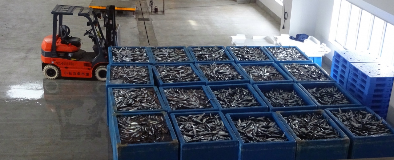 セリ場には近海もののような魚のトロ箱がたくさん積まれていたが、人気はゼロ。