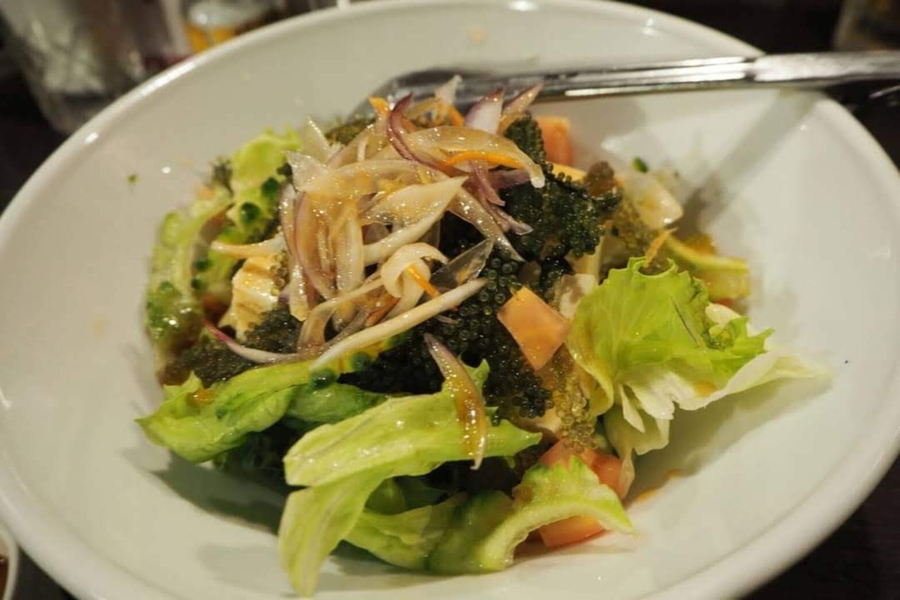海ぶどうのサラダも食感が楽しく、ゴーヤも少し入ってました。ゴーヤの苦味がくせになります!また、あぐー豚とゴーヤの天ぷらもサックサク。あぐー豚は甘みがあり、さすがあぐー豚だなと思うものでした。豚肉の天ぷらというのも珍しいなと思います。ゴーヤは揚げると苦味がひかえめになり、とても美味しかったです。