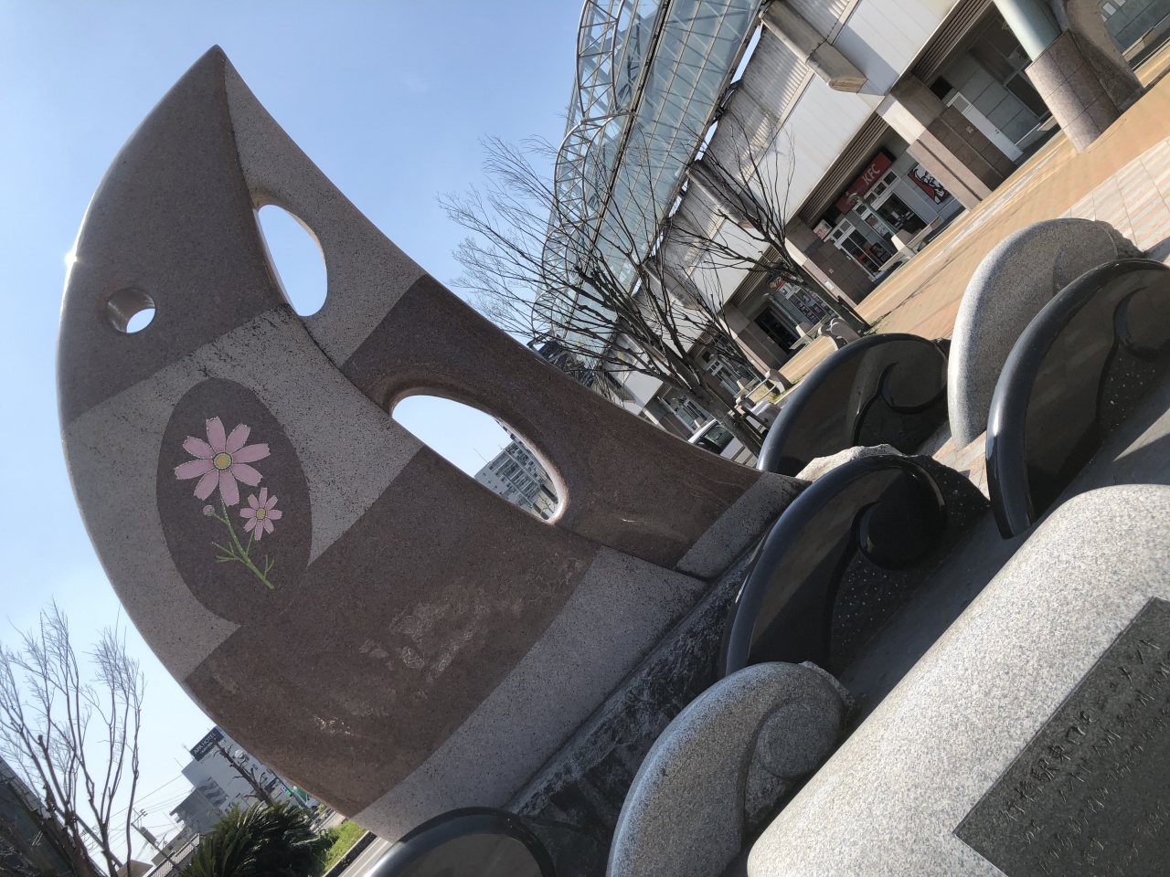日豊本線の特急が止まる駅です。小倉から大分方面に向かうと約15分で着く、次の停車駅です。駅前には鉄道の車輪や、モニュメントがあります。秋に咲くコスモスの絵が描かれています。3つの流派のいけばなも飾られています。