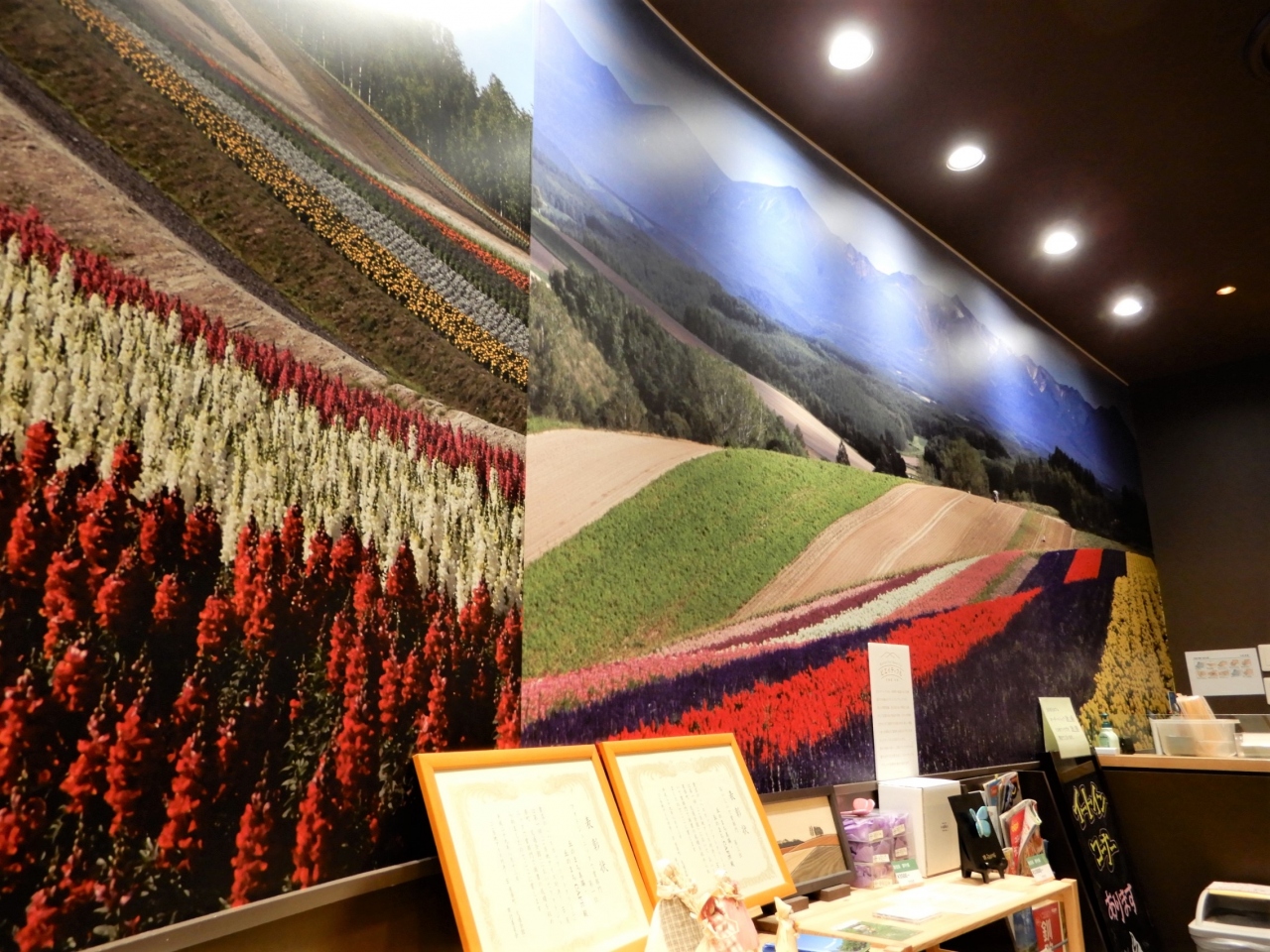店内は北海道一と言われる美瑛の美しい景色が壁に貼られていて思いを寄せられます。