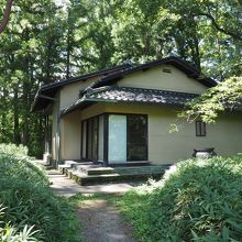 日本の近代芸術家の一人、梅原龍三郎のアトリエで、建築は近代数寄屋建築の大御所、吉田五十八というビッグネームのコラボです。見学は外観のみでしたが、窓からアトリエ内部を覗き見ることができ、イーゼルに絵が置かれていたり、往時の雰囲気が再現されていて面白かったです。