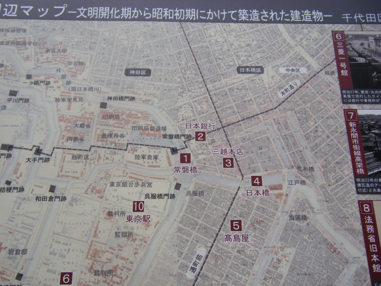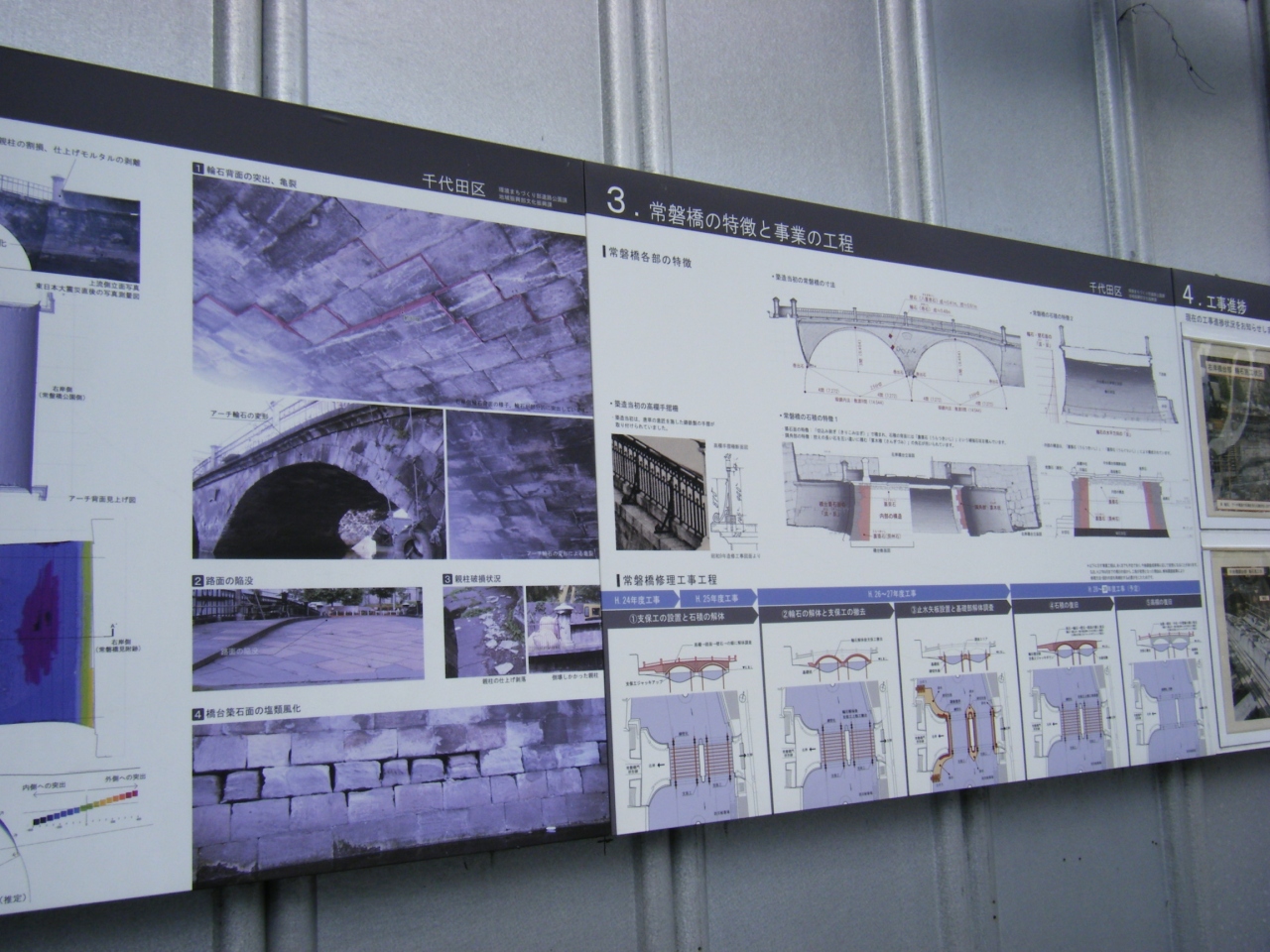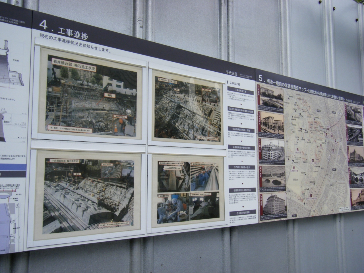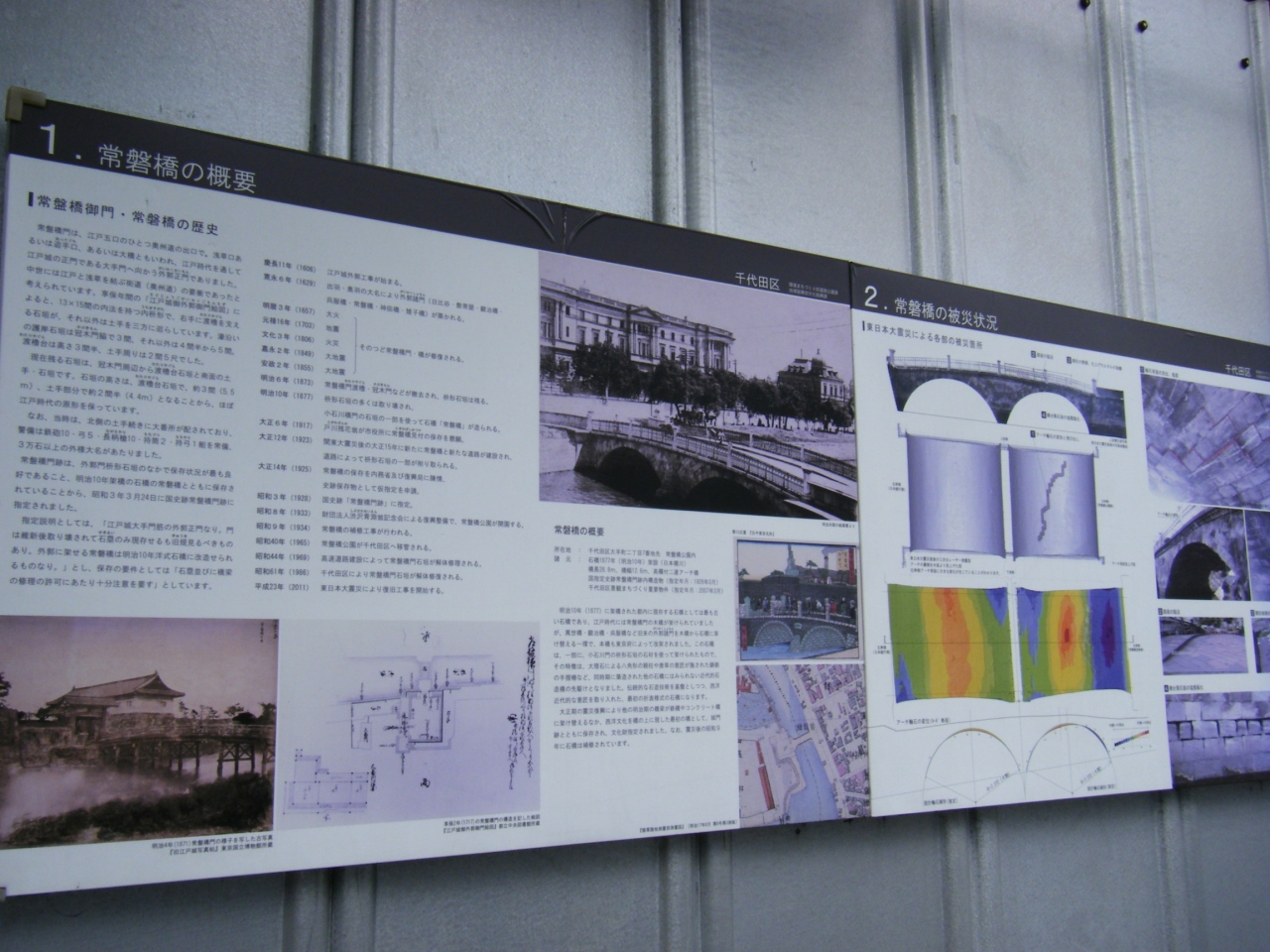 2019年8月に神田~東京駅周辺を散策した際に立ち寄りました。東京駅から徒歩10分弱、日本橋川脇にあるJFE商事ビルのそばに説明の看板が取り付けられていました。常盤橋門跡は現在補修工事中で見学できなくなっており、こういった形で見学できるようにしてくれているのでしょうね。写真付きでかなり詳しい説明文が書かれているので、分かり易くて良かったです。早く工事が終わってその姿を見たいですね。