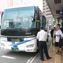 JR徳島駅の前にあるバス乗り場です。ここから、いろんなところに行くバスがあるのですが、私たちは関西国際空港に行くバスに乗りました。乗車券を買う窓口では、担当の方が手際よく、しかし、親切に情報を教えてくれました。交通機関の窓口では大切なことだと思います。徳島を離れる時も、気持ちよく出発することができました。また、来たいと思わせる対応でした。