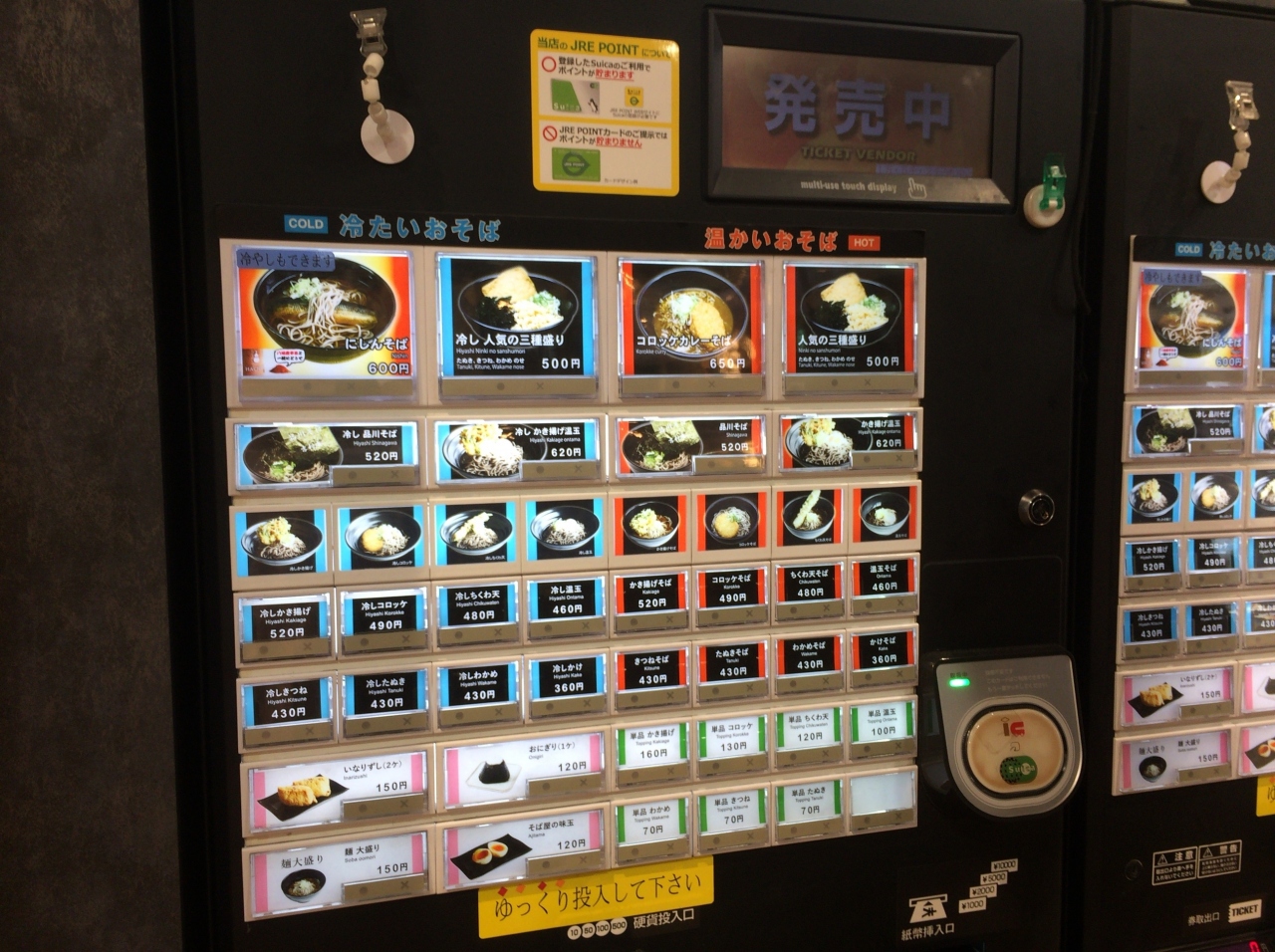 引き渡し口で食券を渡す&受け取りですが、案内スタッフがいたので初めてでもスムーズに利用できました。駅そばですが場所の関係もあるのか、かけそば360円は少々高いなぁと感じたものの、意外とボリュームがありそば一杯でもお腹いっぱいに感じることができました。支払いは現金以外にSuicaやPASMOなどの交通系ICカードも利用可能です。