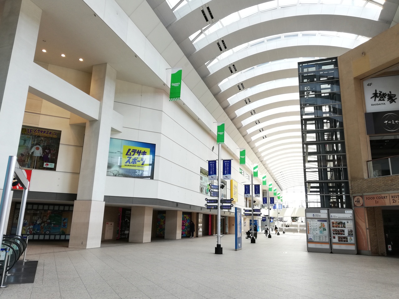 新型コロナの影響で、4/8からコンビニなどを除いて、当面の間休業していますが、クイーンズタワーの中は通り抜けること出来ます。