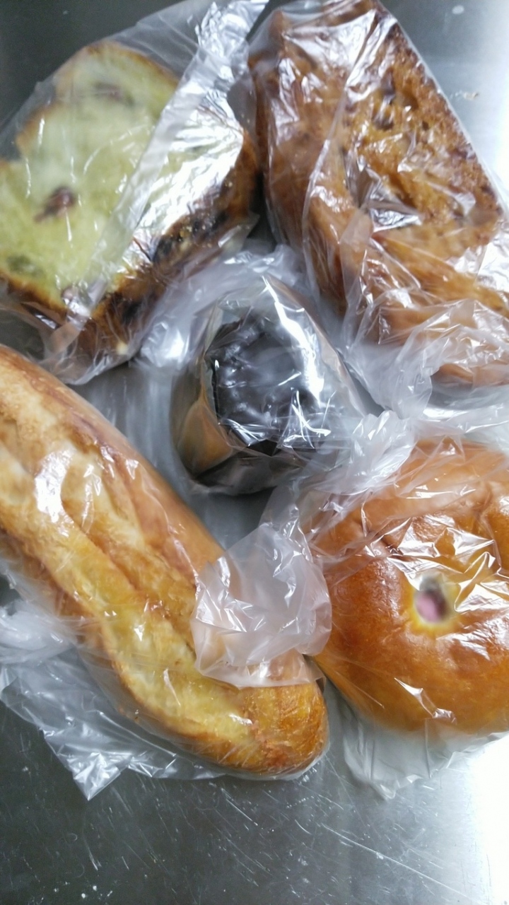 ハチミツロック、明太子フランス、チョコレートカヌレ、抹茶大納言デニッシュ、桜餅アンパンのものを選びました。