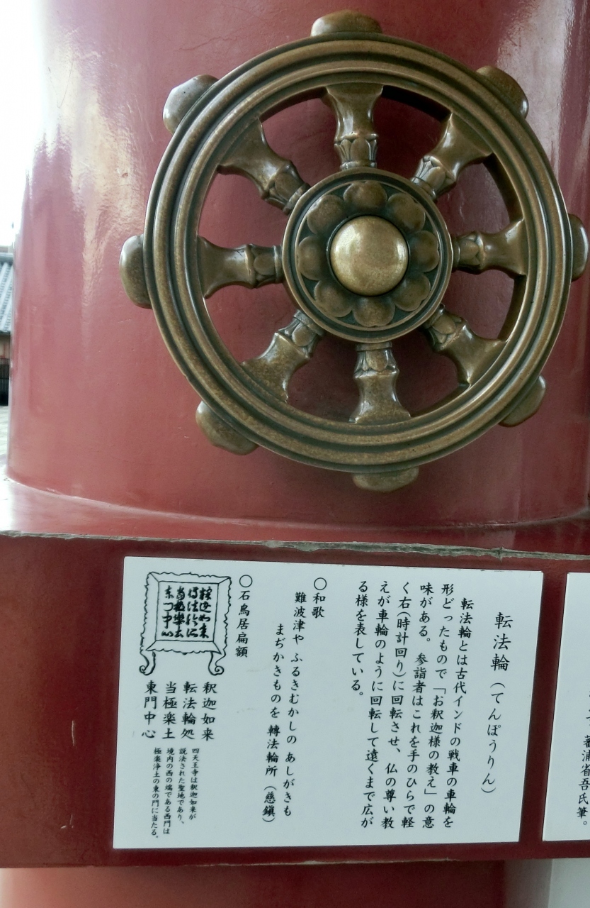 四天王寺の朱色の極楽門に入る時に目立つのがこの小さな車輪型の法輪。