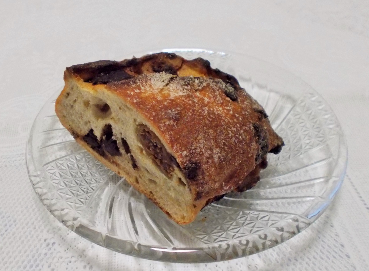 イチジクチョコ・ハーフ、ライ麦入りの生地にチョコ・イチジク・マカダミアナッツを混ぜ込んだ一品。