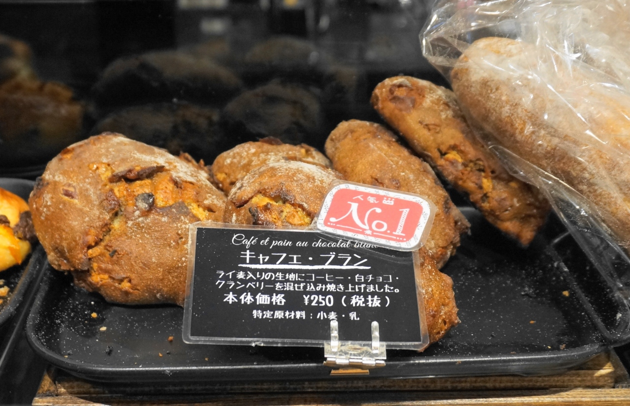 一番人気のキャフェブラン、ライ麦入りの生地にコーヒー・白チョコ・グランベリーを混ぜ込んだ一品。