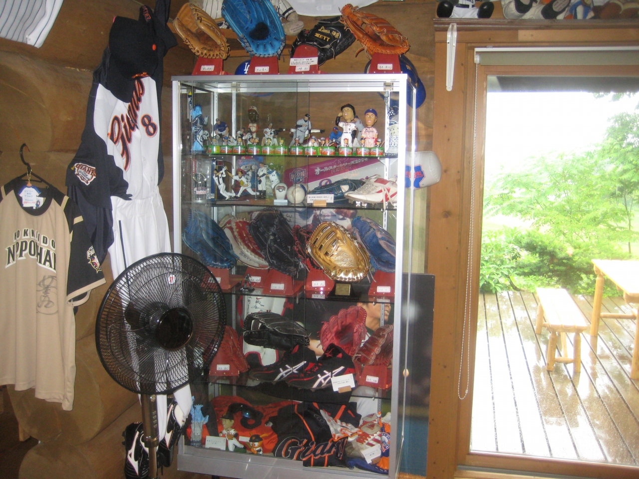 ログハウスには解説者時代から集められた多くの展示物があります。