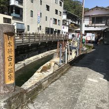 坂の川沿いに昔ながらの温泉情緒を残したなかなから風情ある温泉場