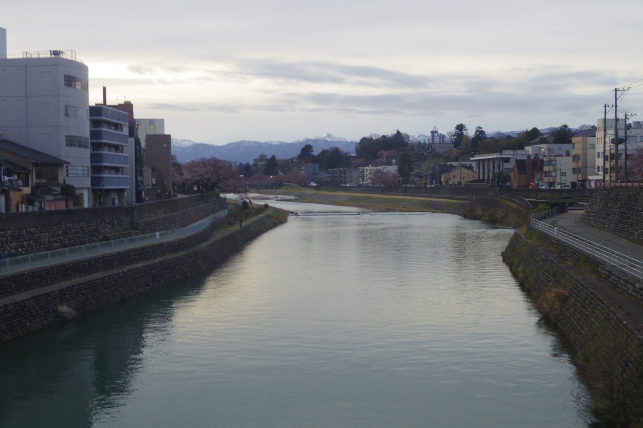 犀川は金沢市の南端から金沢市街を流れ日本海に注いでいるそうで、地図を見ると金沢市は南に延びているのだなと改めて思いました。川幅は広くなくて、金沢市街で実際に橋を歩いてみると、簡単に犀川を渡る事が出来ました。