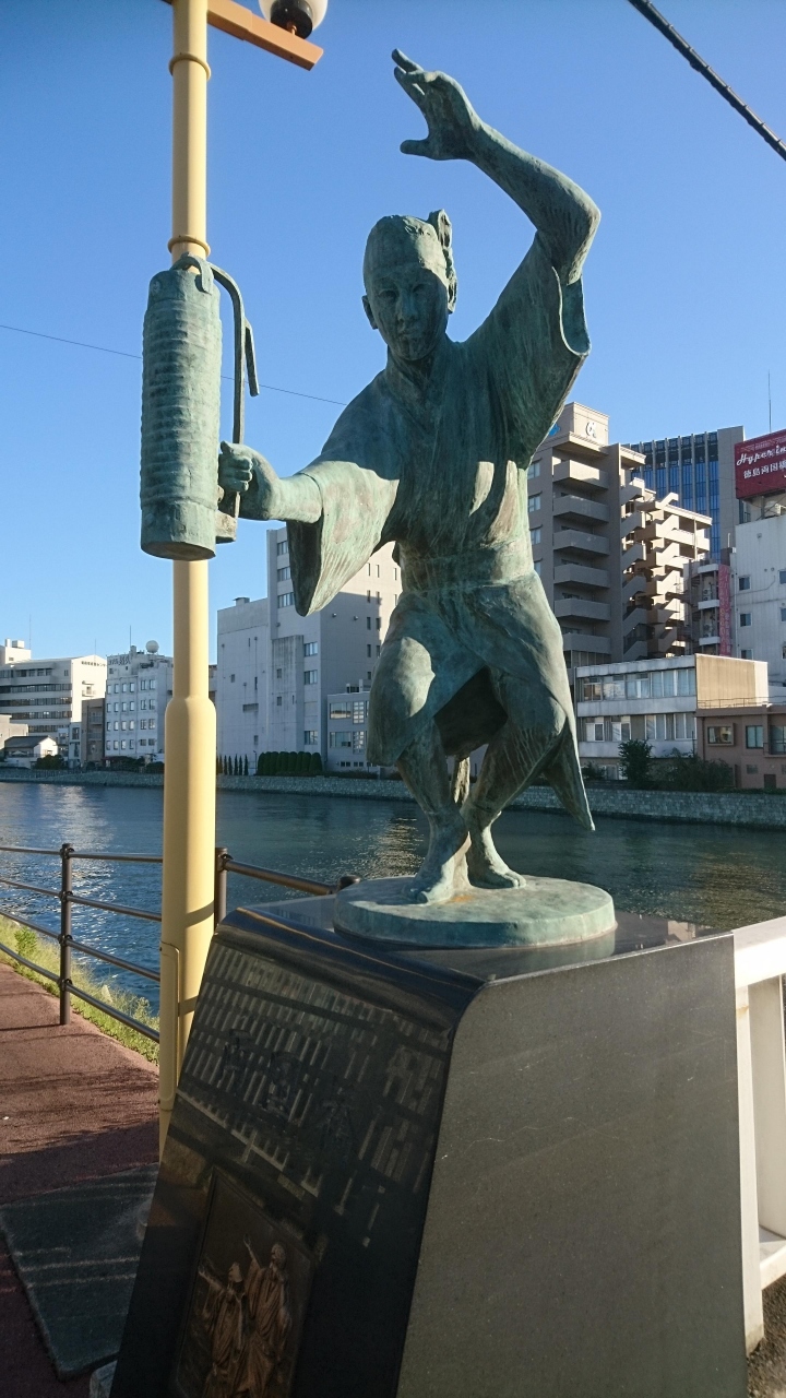 徳島市の新町川公園のわきにある橋です。橋の欄干には、阿波踊りを踊る人の銅像があります。大きな橋ではないのですが、訪れる人は多いです。欄干には、見ごたえのある阿波踊りの銅像がありますが、ここを訪れた理由は、この橋の北側から出ている、ひょうたん島クルーズに乗船するためです。美しさとクルーズが楽しめる橋です。
