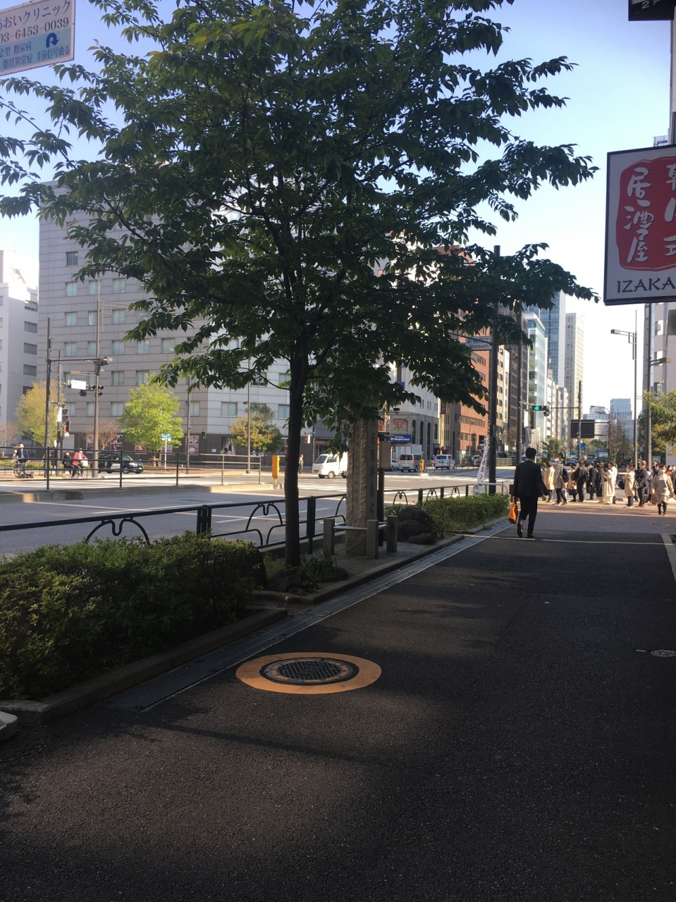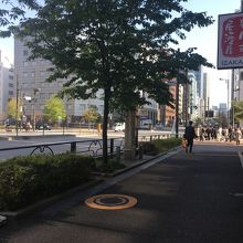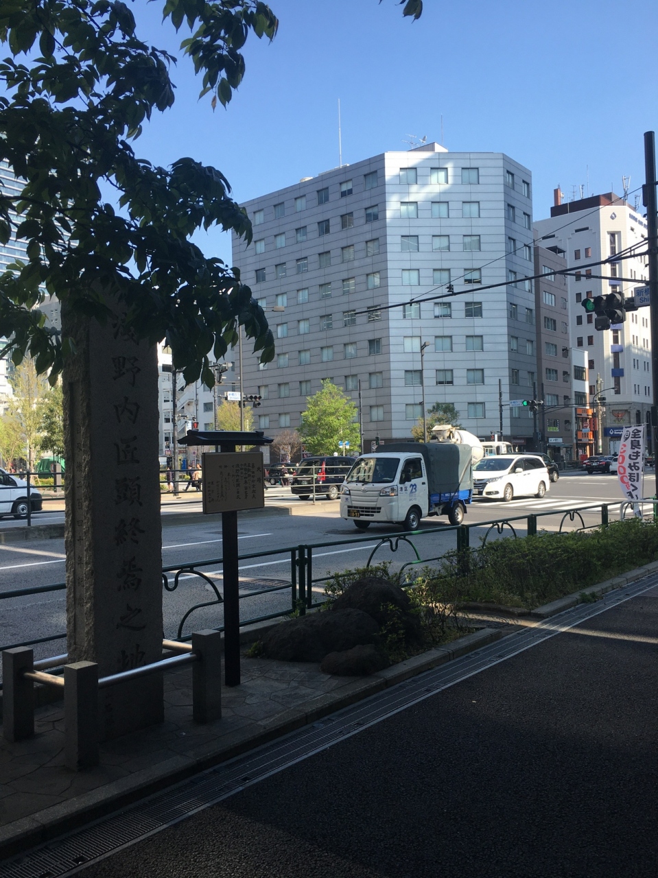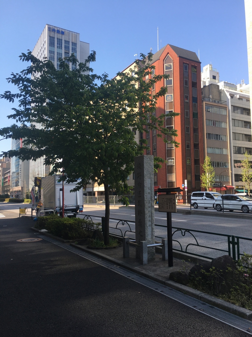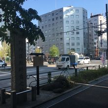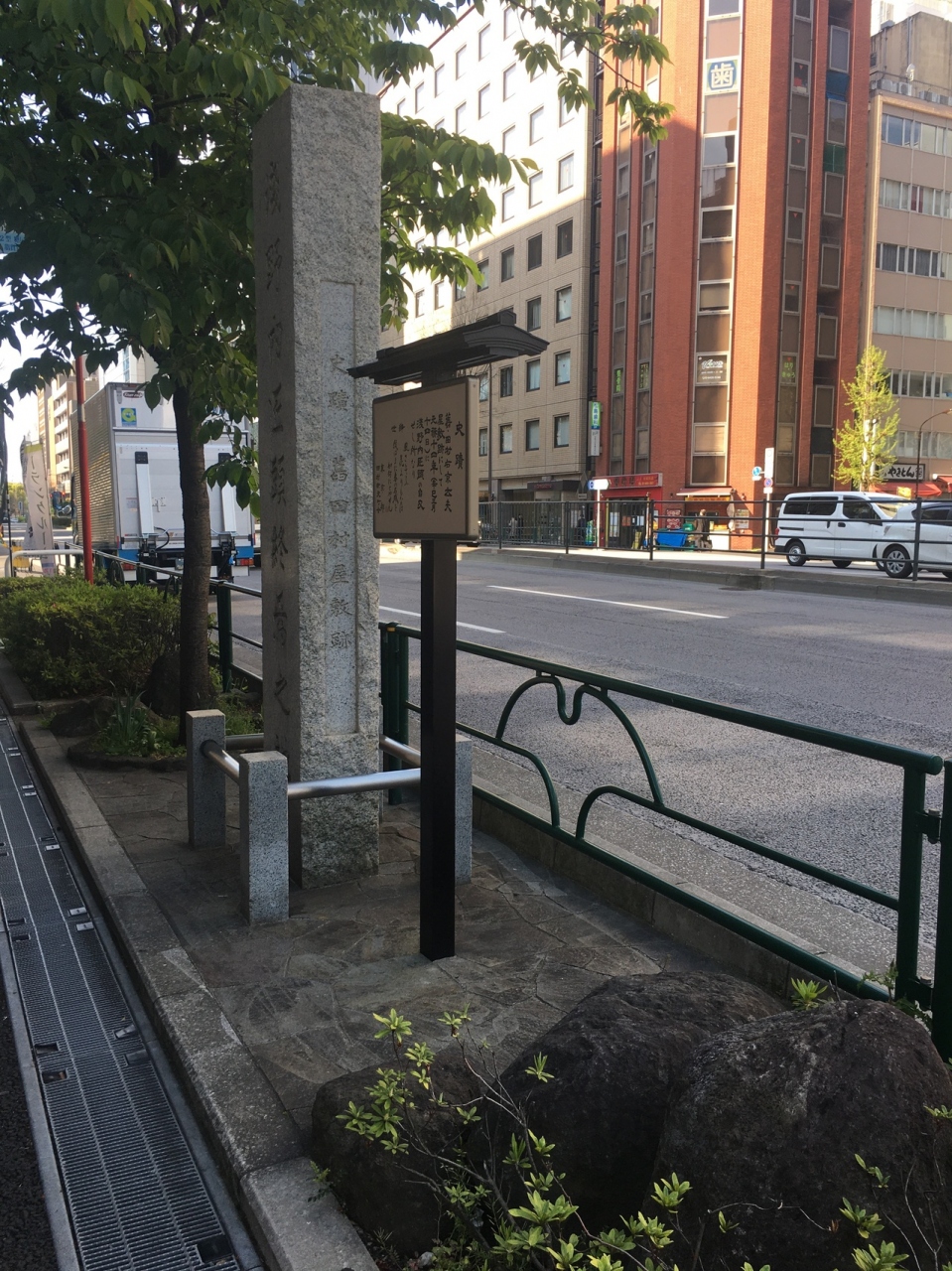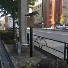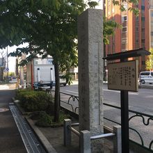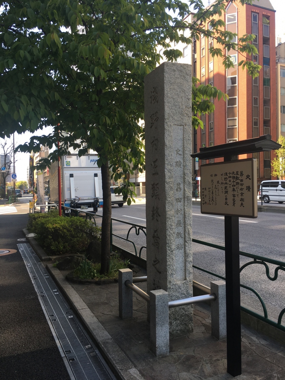 交通量の多い大通り沿いの歩道にあります。石碑は縦長で、立派な石碑でした。史跡と書かれ、田村屋敷跡と書かれた以外は、溶岩色した黒い石碑があるのみで当時のおもかげはなく、通り過ぎて行く人が多い場所でした。