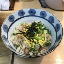 スープを飲み干してしまいたいが、その前に鶏飯を注文。鶏肉が入ったかやくごはんだが、これに残ったスープをかけると、鹿児島(奄美大島)で食べる鶏飯のような感じに。また食べたくなる!!