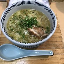スープは塩だれと醤油だれがあるのだが、塩(塩とりそば)を注文。スープは透き通っており、鶏の出汁がちゃんと出ている感じ。千切りキャベツがアクセントになっていて鶏の脂っこさを和らいでくれている。麺はやや細めの平打ち麺。細すぎず、太すぎずちょうど良い。チャーシューも鶏肉。これはある意味「鶏料理」の域かも。