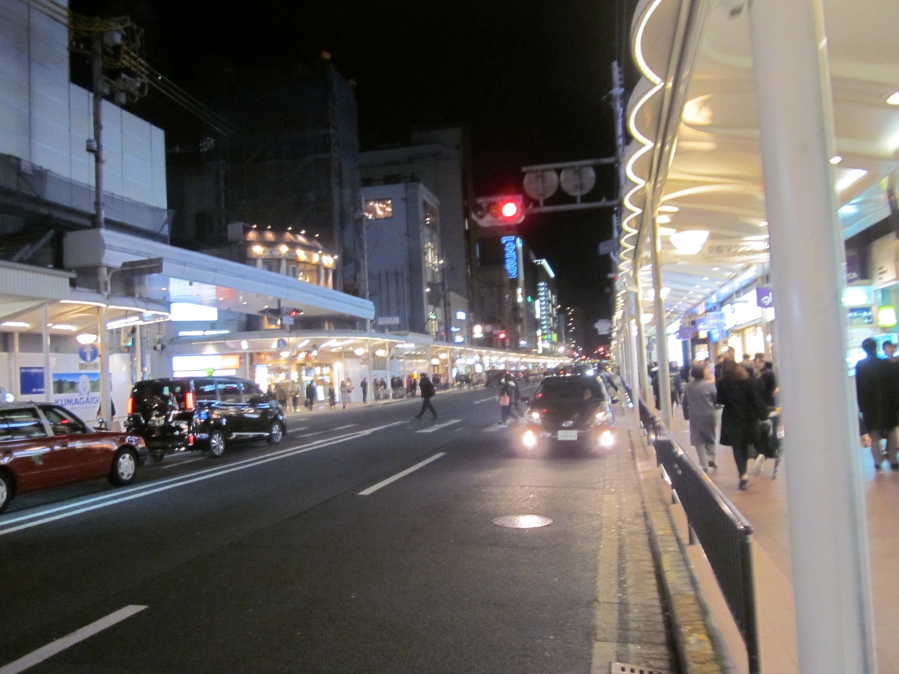 河原町通りは、交通量が多く、バス、タクシー待ちの方も多く、さすが都会って感じです。歩行者も多く、外国人の方も沢山見かけました。夜も賑やかな通りですね。